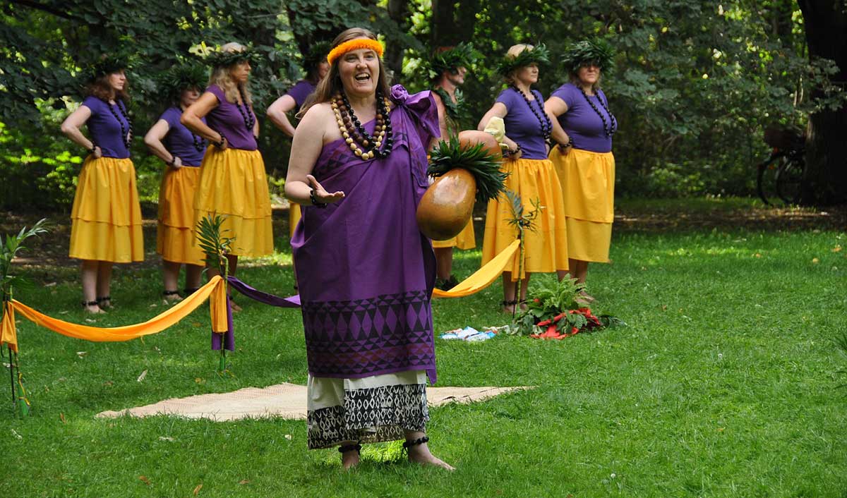 Das Training erfolgt im alten Stil, in der Traditionslinie von Kumu Hula John Keola Lake, dem Schirmherrn der Berliner Hula Schule: